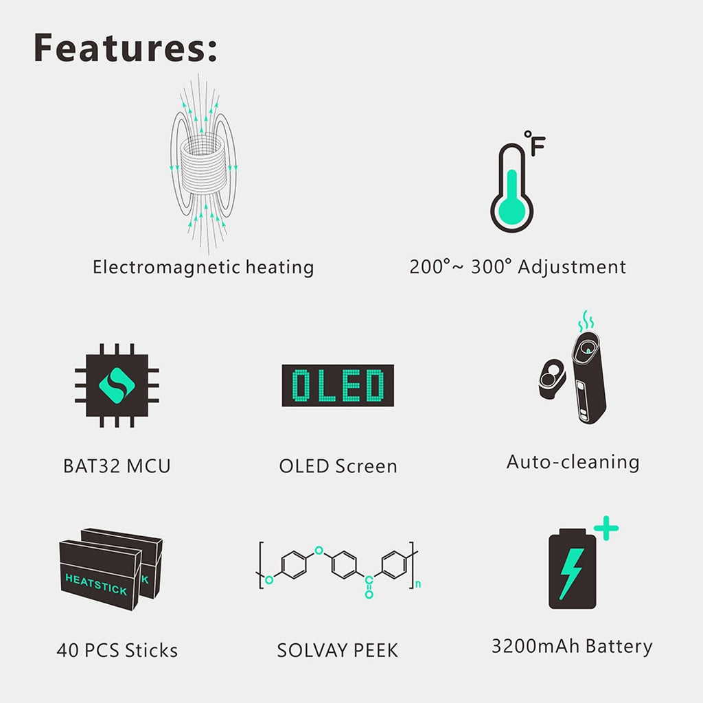 The LAMBDA i8 Gold is designed with PPSU and PEEK materials that have excellent heat resistance. While the heating chamber area may get warm during a session (which is normal), the body of the device remains comfortable to hold. The induction technology is also highly efficient, directing heat primarily to the stick rather than the device casing.
