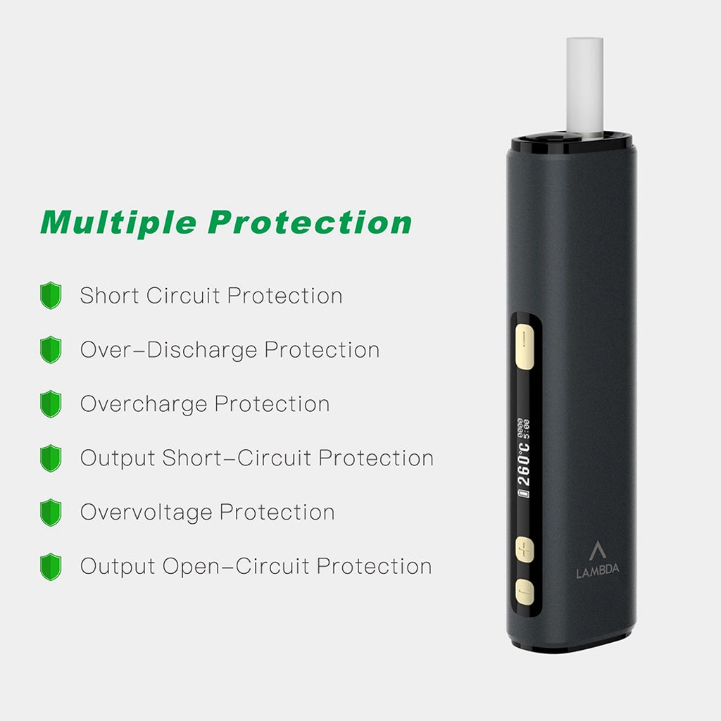 The LAMBDA i8 Green is designed with PPSU and PEEK materials that have excellent heat resistance. While the heating chamber area may get warm during a session (which is normal), the body of the device remains comfortable to hold. The induction technology is also highly efficient, directing heat primarily to the stick rather than the device casing.