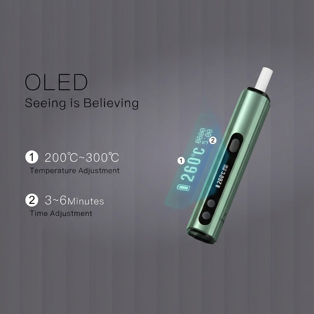 With its 3200mAh battery, the device can deliver up to 40 consecutive sessions. For a moderate user (one pack a day), a single charge can last nearly two days. Heavy users may need to charge it once daily. The OLED screen always displays the current battery percentage.